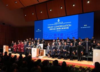 The Hong Kong University of Science and Technology (HKUST) held its Congregation 2024 today (November 23). The occasion witnessed the conferment of Honorary Doctorates upon four prominent and distinguished leaders by HKUST Pro-Chancellor Dr. John CHAN Cho-Chak, in recognition of their remarkable accomplishments and contributions. Also joining the ceremony included HKUST Council Chairman Prof. Harry SHUM, HKUST President Prof. Nancy IP, and other members of the senior management team.