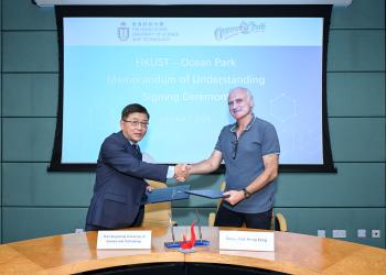 The Hong Kong University of Science and Technology (HKUST) hosted an agreement signing ceremony with Ocean Park Corporation on October 7, building on the universities' strong foundation of partnership. The ceremony was held during HKUST's French Science Festival and featured Prof. Jianping GAN, Head of HKUST's Department of Ocean Science, and Dr. Paolo MARTELLI, Director of Veterinary Services at Ocean Park.