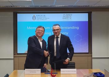 On October 15, HKUST Provost Prof. GUO Yike, Prof. Hongbo FU, Acting Head of the Division of Arts and Machine Creativity and Yvonne LI, Head of Global Engagement & Greater China Affairs, had an engaging meeting with representatives from Auckland University of Technology (AUT) in New Zealand, including Prof. Guy LITTLEFAIR, Pro Vice-Chancellor International, and Mr. William HO, Director of International Relations and Recruitment at AUT International Group. The discussions explored potential collaboration in Health, Art Tech and Sports Science. Opportunities for faculty and student exchanges were also discussed. A Memorandum of Understanding was signed, marking the start of a promising partnership.