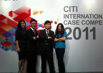 I was honor to be nominated by School of Business and Management (SBM) to represent HKUST (team of 4 students) to join the 2011 Citi International Case Competition ( https://hkicc.hkust.edu.hk/past_competitions_2011.html ). 20 teams of 4 students from all around the world join in the competition, such as UC Berkley and USC from US, UBC from Canada, NUS from Singapore, Thammasat University from Thailand, Tsinghua University from China, etc. The 20 teams are divided into 4 divisions and after the preliminary presentation on Wednesday afternoon, 4 top teams from each division will be selected to join the final presentation on Thursday.