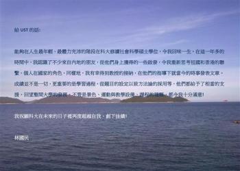 I still remember the first day I went to UST for registration. Unfamiliar faces and unfamiliar surroundings. I wondered whether I would ever fit in the university. It was such a big transition from secondary school and I never thought that I would have learnt to love this place so much over the three years.