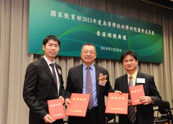 Researchers from the Hong Kong University of Science and Technology (HKUST) have received two awards in the 2013 Higher Education Outstanding Scientific Research Output Awards (Science and Technology) presented by the Ministry of Education - one first-class and one second-class award.Prof Joseph Hun-wei Lee, Vice-President for Research and Graduate Studies congratulated the winning research teams. "The prizes are recognition of our University's on-going efforts to pursue excellence in education, research and innovation. We will continue to look for more collaborative opportunities to deepen ties between local and Mainland scientists, with a view to boost socio-economical development in Hong Kong and Mainland China at large," Prof Lee said.