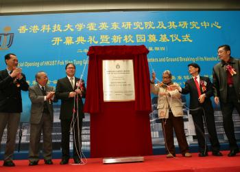 The Hong Kong University of Science and Technology (HKUST) today (Thursday) officially named its Graduate School in Nansha as “HKUST Fok Ying Tung Graduate School” in a ceremony that combined the official opening of the Graduate School and the ground breaking of its Nansha campus.The naming is in recognition of the late Dr Fok Ying Tung’s great contribution to the motherland and Hong Kong and also his generous support of the HKUST. It was the enormous generosity of the Fok Ying Tung Foundation that made possible the establishment of the HKUST Fok Ying Tung Graduate School at the Nansha IT Park, with a specific mission to contribute to the Mainland’s development as a knowledge-based nation.