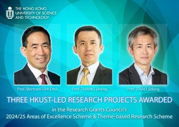 Three research projects led by the Hong Kong University of Science and Technology (HKUST) were awarded a total funding of HK$212.5 million by the Research Grants Council (RGC)’s Areas of Excellence (AoE) Scheme and the Theme-based Research Scheme (TRS) 2024/25, the highest funding amount among all local universities. It also marks a record-high result for the University.
