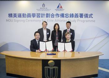 The Hong Kong University of Science and Technology (HKUST) and the Hong Kong Sports Institute (HKSI) signed a Memorandum of Understanding (MoU) today to facilitate dual career pathways in sports and academics for elite athletes in Hong Kong. Under this MoU, HKSI can nominate full-time elite athletes for admission to undergraduate programs of HKUST. The University will offer flexible academic accommodations, including study load balancing, re-scheduling in examinations and adjustment in class attendance requirement, on a case-by-case basis. An advisory committee comprising faculty members and sports specialists will be formed to oversee the athletes’ learning progress and address their individual needs. To accommodate their intensive trainings and competition schedules, HKUST may extend their study to a maximum of twice the normative program duration.