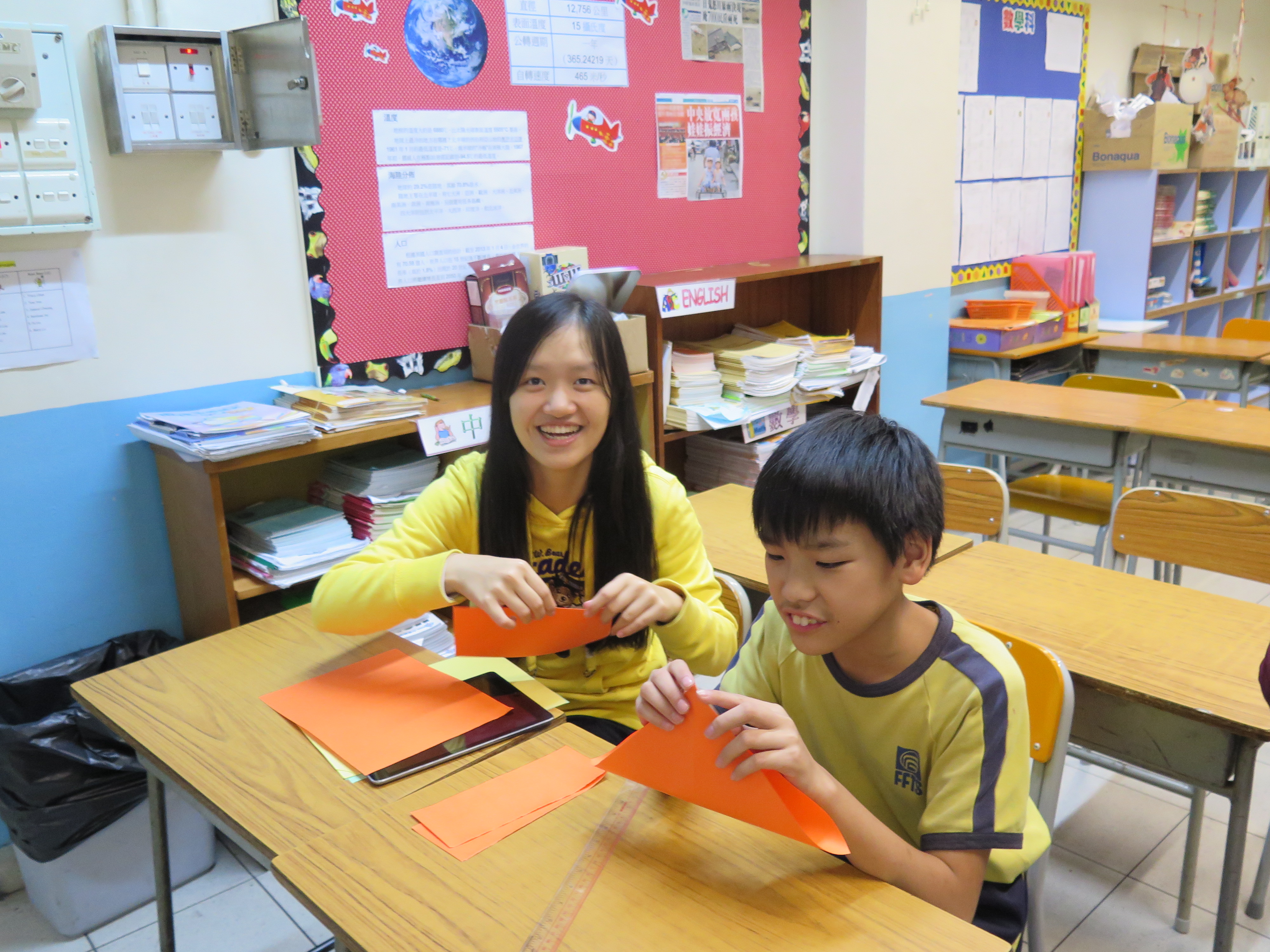 At the classroom, we eventually had a chance to interact with the students. At first, two foreign participants taught the students how to say “hello” in different languages which aimed to stimulate their interests. Afterwards, we did paper folding with them and help them with their homework. When talking with them, I could realize the heavy workload and the pressure from academics they faced. I realized that something was needed to be done to release the pressure of the young kids and to make their lives more vibrant. They might need more passionate volunteers to interact with them and to mentor them step by step.