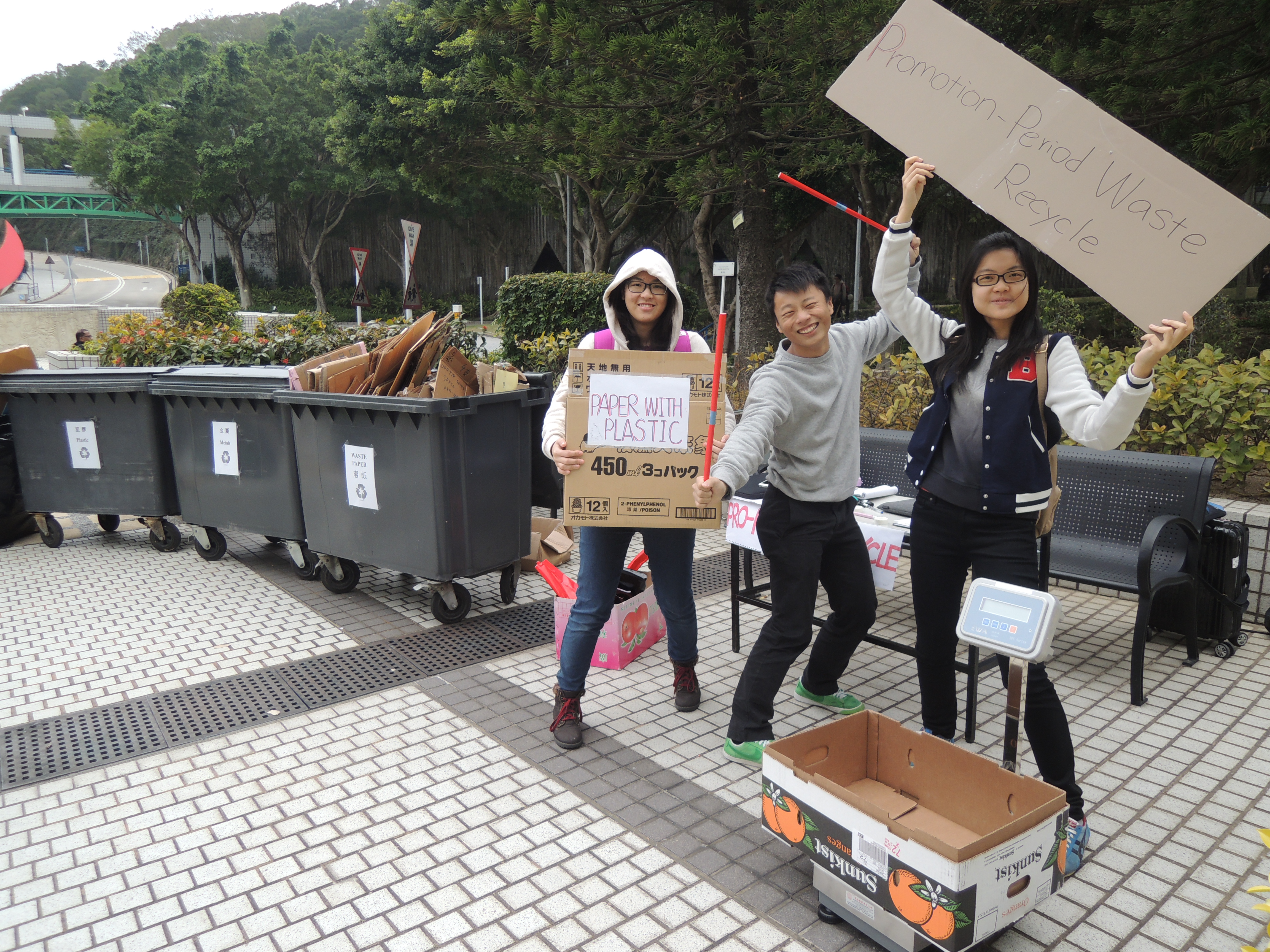 The experience was a valuable one for us.  From trying to get the project off the ground before the deadline with only a small executive team of three students, to negotiating with more than 30 student societies, and feeling the joy when seeing the first participant and the burden of dealing with a large amount of waste, we were grateful for all the support that came to us, including the help from the Environment Management and Technology students and the Environment Students’ Society (EVSS).