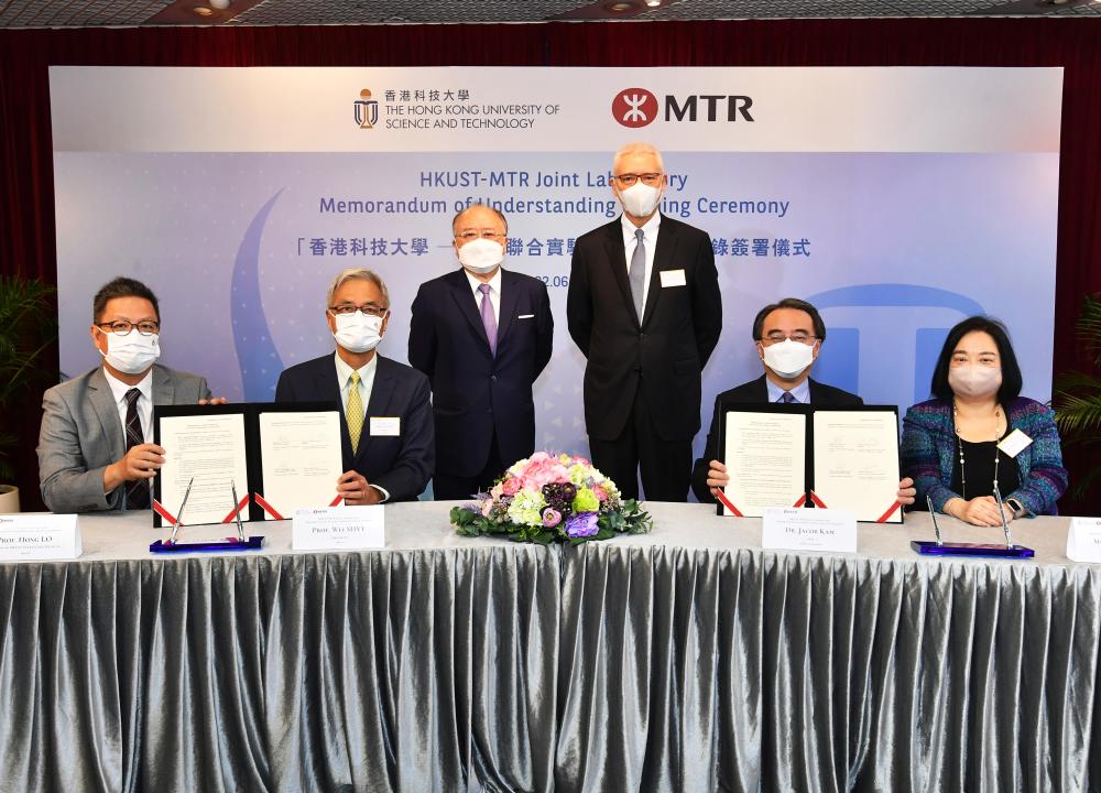 香港科技大学(科大)与港铁公司及港铁学院今天(二零二二年六月十日)签署合作备忘录(「备忘录」),成立「香港科技大学—港铁联合实验室」。这是港铁首次与大专院校合作成立实验室,公司期望透过与科大极智慧城市研究院的合作,推动自主创新科技应用于铁路及其他服务上,达至鼓励本地科研、建设智慧社区的目的。