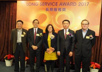 The annual Long Service Award Presentation Ceremony was held on 2 March 2017 to express appreciation and recognition to long-serving faculty and staff members who have dedicated their hard work to contribute to the University for 20 years. This year, HKUST presented awards to 66 colleagues.