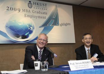 香港科技大学商学院(科大商学院)对于其工商管理硕士课程连续4年在经济学人(The Economist)的排名中领先亚洲各大院校,深感荣幸。虽然金融及银行业是金融风暴下的重灾区,雇主在招聘时显得谨慎,而且不少公司更冻结招聘。在此情况下,仍然有56.7% 毕业生进入金融业,与2008年的56.3% 相约。根据科大职业发展部较早前的收集数据,93% 学生更在毕业后三个月内找到工作。 科大商学院资深副院长及工商管理硕士课程主任戴启思教授对此表示 : 「过半数毕业生获金融机构或银行聘请,证明科大工商管理硕士课程的确能令学生战胜最具挑战性和最困难的状况。正是在如此艰难的景况,雇主更加渴求有竞争力和拥有多方面管理才能的员工。因为他们能够帮助企业渡过难关。」 受聘于金融和银行的毕业生担当的工作范畴包括投资分析、股票研究、基金管理、顾问、销售等。消费者/市场营销是毕业生的第二大出路(15%),之后是顾问/其它专业(10%)。 为了令学生从金融危机的灾难中得到教训,科大商学院工商管理硕士课程今年新增了一个核心课程,称为「领袖的承担与操守」,藉此促进负责任的管理文化和商业决定。科大商学院拥有多元文化,学生国籍多达27个,当中92% 为非本地学生。 「对于再次获评为亚洲和香港的最佳工商管理硕士课程,我们感到十分鼓舞。科大商学院会继续为香港及亚洲区提供高质素的商业教育课程。」戴启思教授说。根据经济学人最新公布的工商管理硕士课程排名,科大商学院于全球位列30。商学院认为其课程的全球排名下跌,主要由于在2009年上半年的严峻经济环境下,不少高薪的职位被削减,平均薪酬下降;同时本校的人数相对较少,以及学生较偏好金融和银行业,故所受的影响亦较其它院校为大。 「我们相信工商管理硕士课程毕业生于求职时的选择减少只是暂时性,但我们有信心当经济好转时,学生的就业情况会更为理想。」戴启思教授补充 :「科大与很多亚洲企业已建立巩固的网络,它们会继续为我们的学生提供区内最具吸引力的理想职位。」