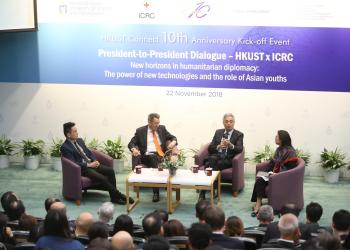 香港科技大学(科大)与红十字国际委员会(ICRC)今天首次举行公开领袖对谈,探讨科技为人道领域带来的机遇及挑战,以及亚洲青年在当中扮演的角色。今次乃ICRC主席彼得·毛雷尔先生首度于香港进行公开演说。他与科大校长史维教授就「人道外交新视野﹕新兴科技及亚洲青年的影响力」展开对谈,议题包括自动化武器的出现、新科技对人道工作的影响,以及亚洲青年如何随着亚洲崛起,对国际人道工作产生更大影响力。因研究国际关系而闻名中外的学者沈旭晖博士其后亦加入讨论,由科大人文社会科学学院院长蔡欣怡教授担任研讨会主持。为深化大学成员及公众对国际人道工作的认识,科大亦自昨天起举办为期三日的展览,展出ICRC因应艰苦苛刻的环境而设计或应用的创新设备,例如可在阿富汗及南苏丹等环境相对恶劣的国家使用的新款义肢。这款义肢不但容易修复,亦方便配戴的人士进行各项包括宗教仪式及祷告等活动。此外,活动亦展示了一个价格低廉、操作简单及高效能的太阳能照明灯。它除了可在没有电力的情况下提供照明,更可为手机充电,让战地居民身处险境时有电话应用。ICRC为训练员工而设的虚拟现实装置亦为展品之一。参加者戴上装置,可感受到在地球另一端人民的生活惨况,包括在枪林弹雨下过马路,或在人满为患的监仓生活等情景。展览让科大生反思在设计一件产品或技术时,所需考虑的实际因素,以及他们的技能和知识可如何协助推展人道工作。获选中的学生大使,亦会在是次活动中协助介绍有关展品,以及现今人道灾难的严重性与影响层面。毛雷尔先生表示﹕「我们的世界正面对重大的人道挑战,超过一亿二千万人现正需要各种各样的人道援助。要减轻人道危机所带来的伤害及为人们提供保护,需要各个界别共同的努力,所以ICRC一直鼓励新伙伴加入。科大是一所卓越年轻的大学,拥有强大的校友网络,我们相信科大能为现今社会所面对的迫切议题作出贡献。」科大校长史维教授表示十分荣幸邀得毛雷尔先生作为其中一位主讲嘉宾,他说﹕「毛雷尔先生的演讲让我们对现今的人道状况有了更透彻的理解。虽然现代科技如人工智能及机械人是推动增长的新动力,但我们亦需要了解其所带来的危机及道德问题。我希望是次对话可让科大成员以一个新角度认识创新科技,思考如何为人道危机提供解决方案。」