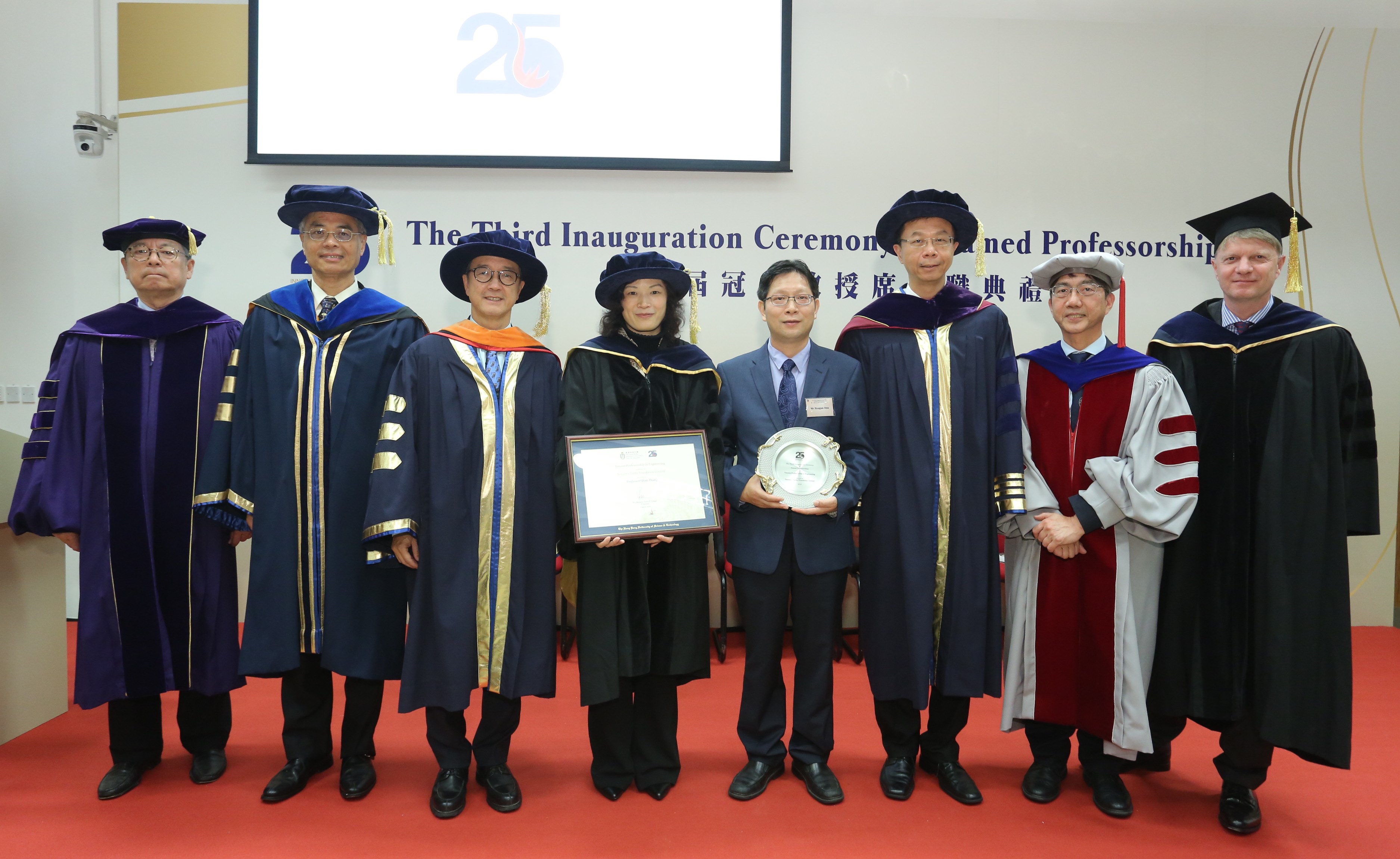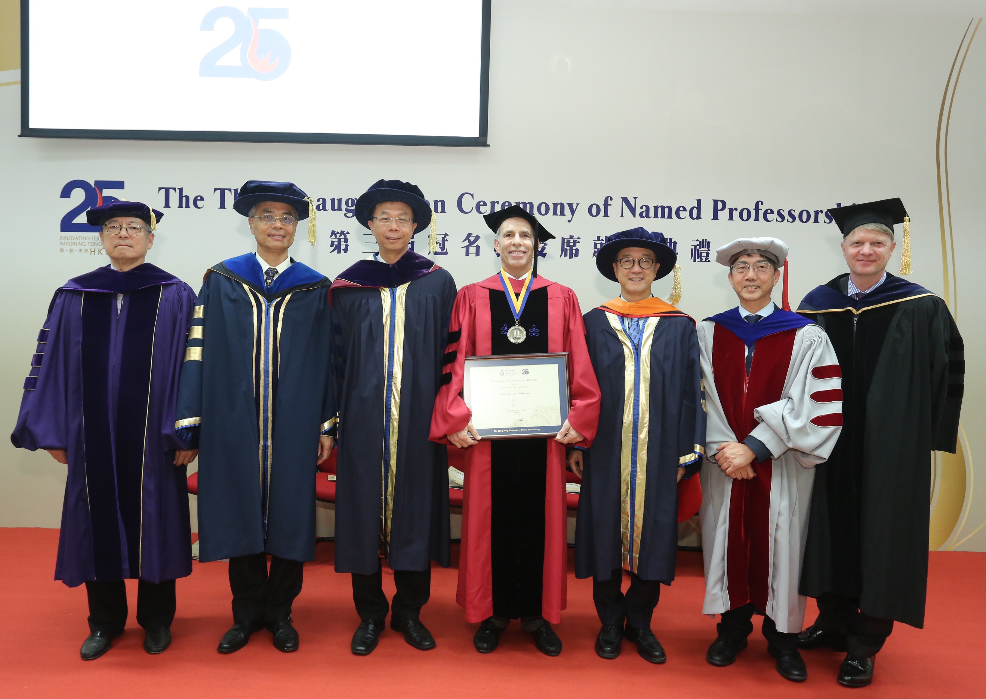 陳教授向各冠名教授道賀,並指出:「今屆就職的冠名教授在多個不同領域表現出色,包括科學、工程、商業管理、社會科學及其他範疇等。他們追求教研卓越的熱誠和毅力,將樹立榜樣,啟發學生,並有助大學鞏固其國際知名研究型大學的地位。科大將繼續爭取社會各界支持,不斷提升教研實力,以實踐大學科研卓越的使命。」